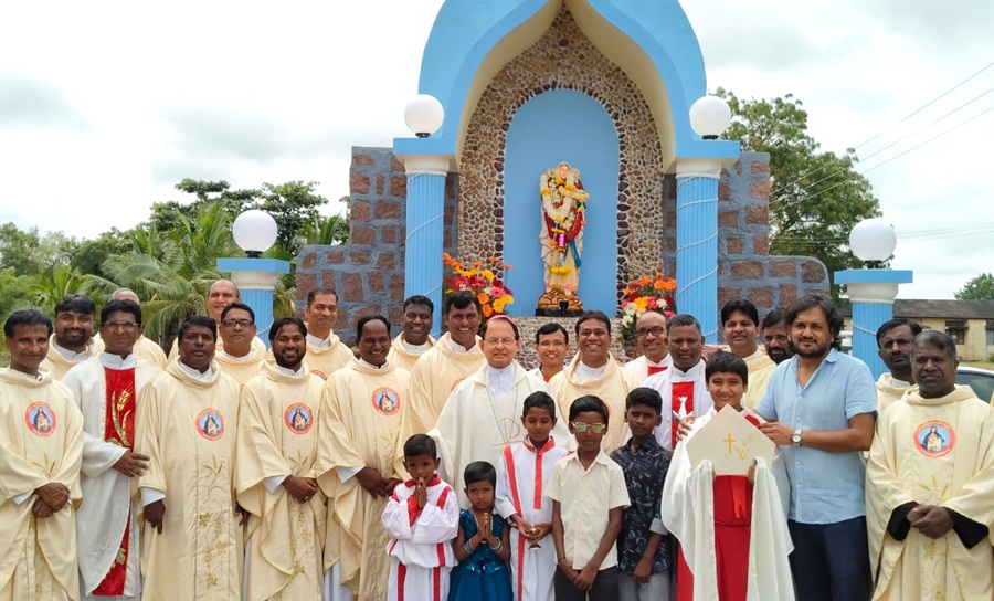CCFT has a beautiful Mother Mary’s Grotto: Jawalgera: 24 OCT, 2025: Newly built grotto of Blessed Virgin Mary was blessed and inaugurated at CCFT, Jawalgera Farm of Raichur District on 24 th October, 2025. Built under the leadership of Parish Priest and Director of CCFT, Fr Alphonse George, the beautiful grotto was blessed by Bishop Henry D’Souza, Bishop of Bellary in the presence of good number of priests and parishioners. The entire parish of Jawalgera Farm enthusiastically participated in the event which was followed by the Holy Eucharistic celebration. It was in the midst of pouring rain the event took place. Congratulations to Fr Alphonse George and the parishioners.
