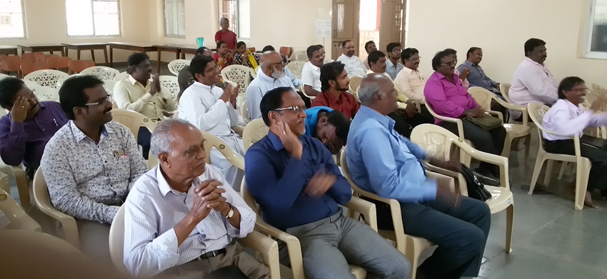 Bishop urged all those present to journey together to promote justice and peace in our present situation as an expression of our faith in the Triune God. All the pastors and priests jointly committed themselves to promote justice and peace and fight for our rights. The program was jointly sponsored by Catholic Association Bellary and UCF Bellary. Rev. John Mark thanked Fr.Maxim Dias PRO, UCF & Mr. Raju Balraj, President CAB and Mr. Suby Mathew, treasurer CAB for successfully organizing the event. The program ended with a Fellowship dinner.
